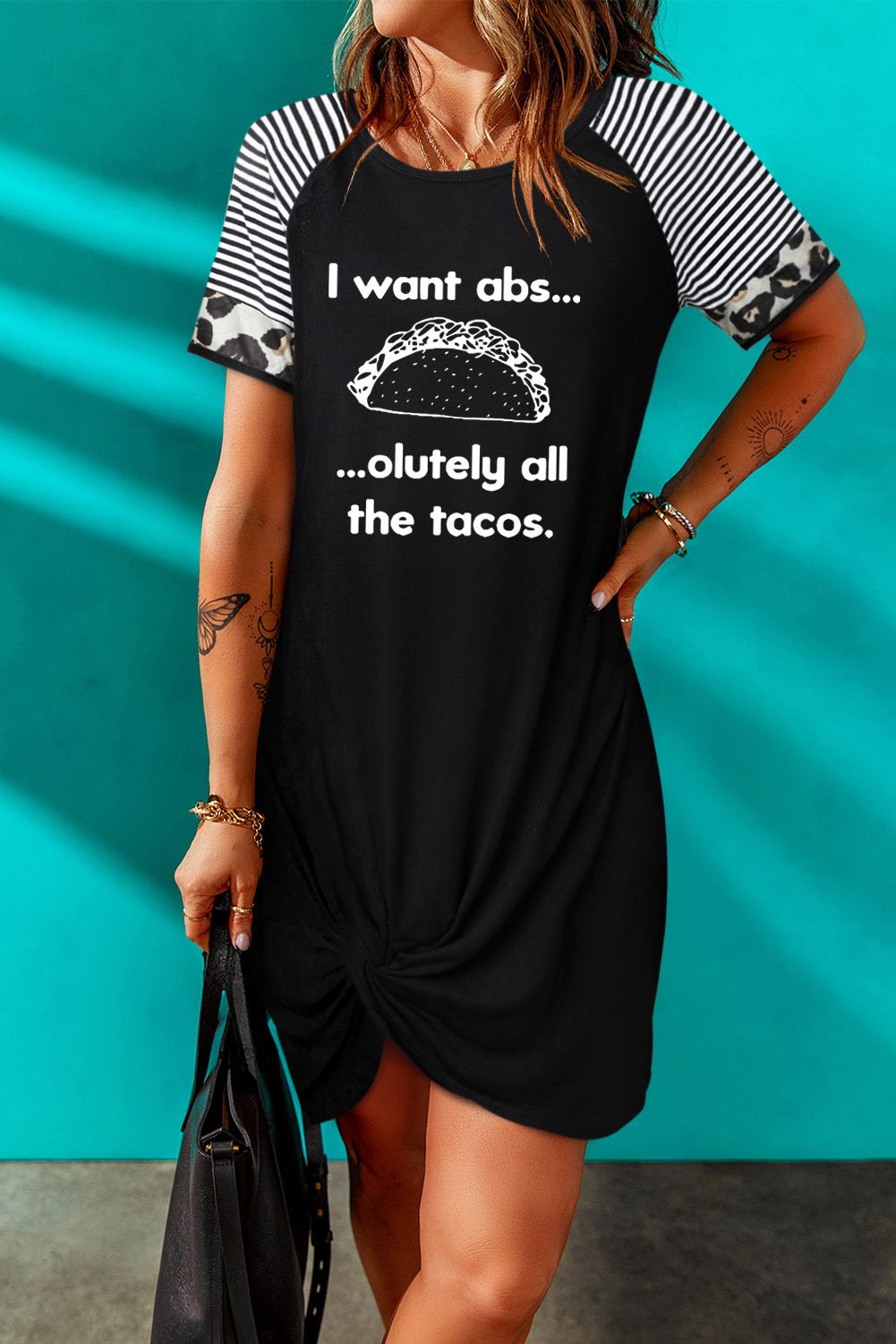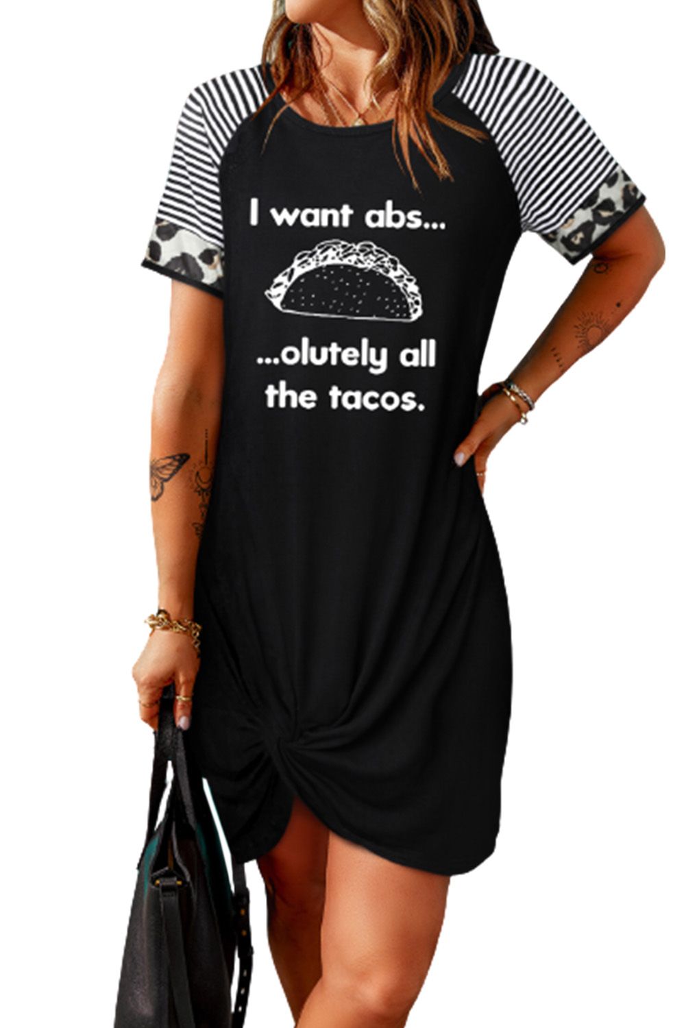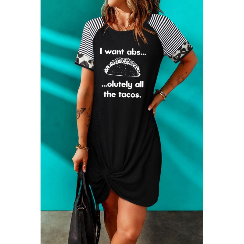 Black I Want Abs Funny Food Lover Graphic T Shirt Dress