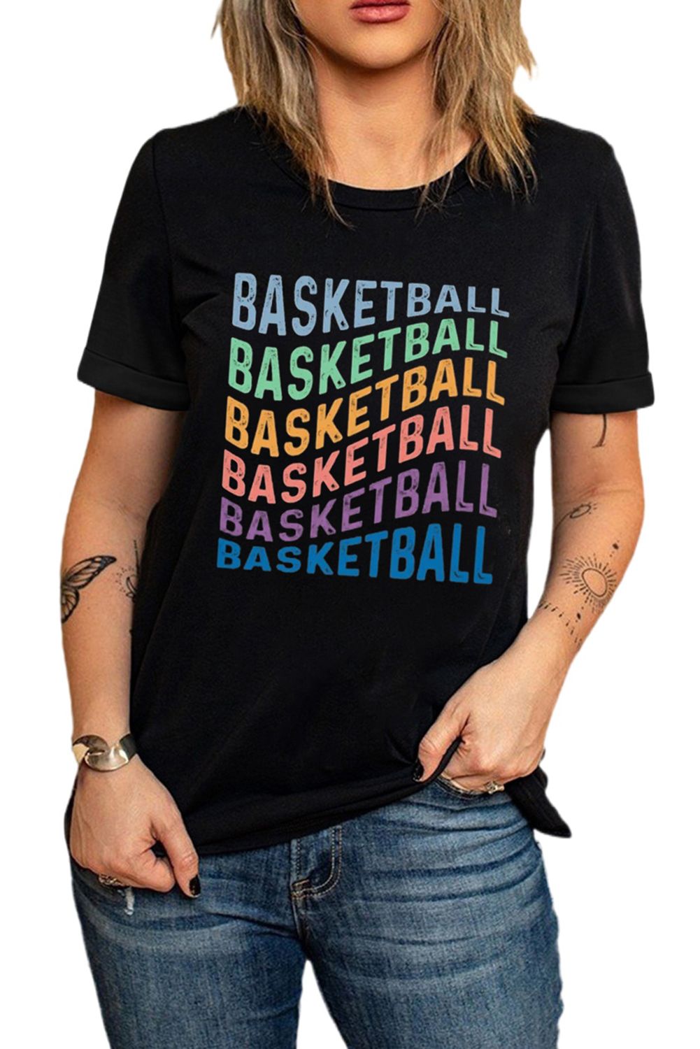 Full Of Basketball Multicolor Print T Shirt