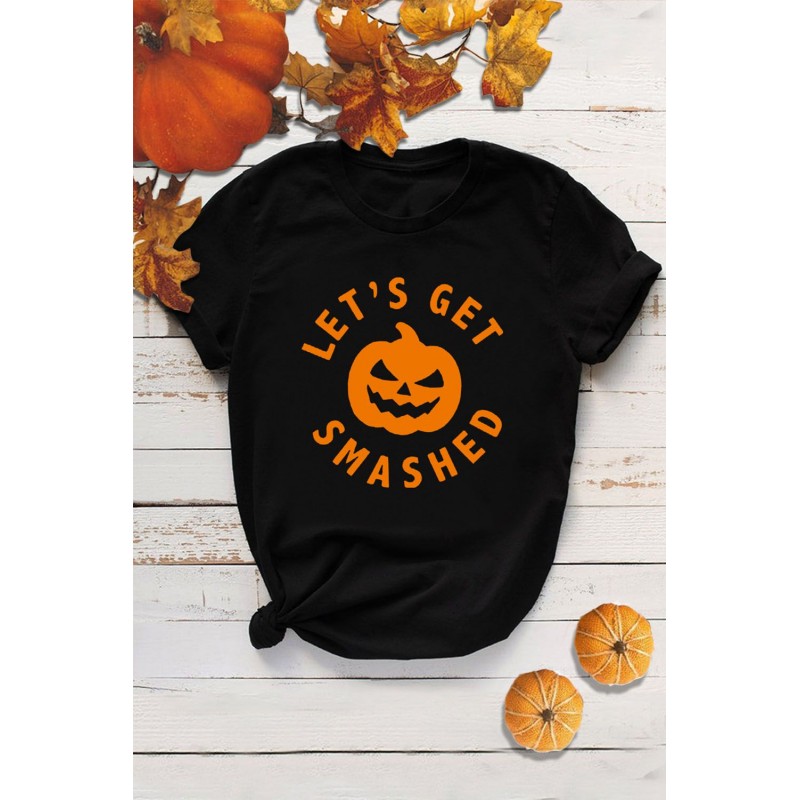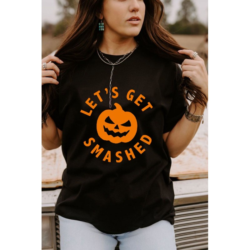 Black LET'S GET SMASHED Halloween Pumpkin Face Graphic Tee
