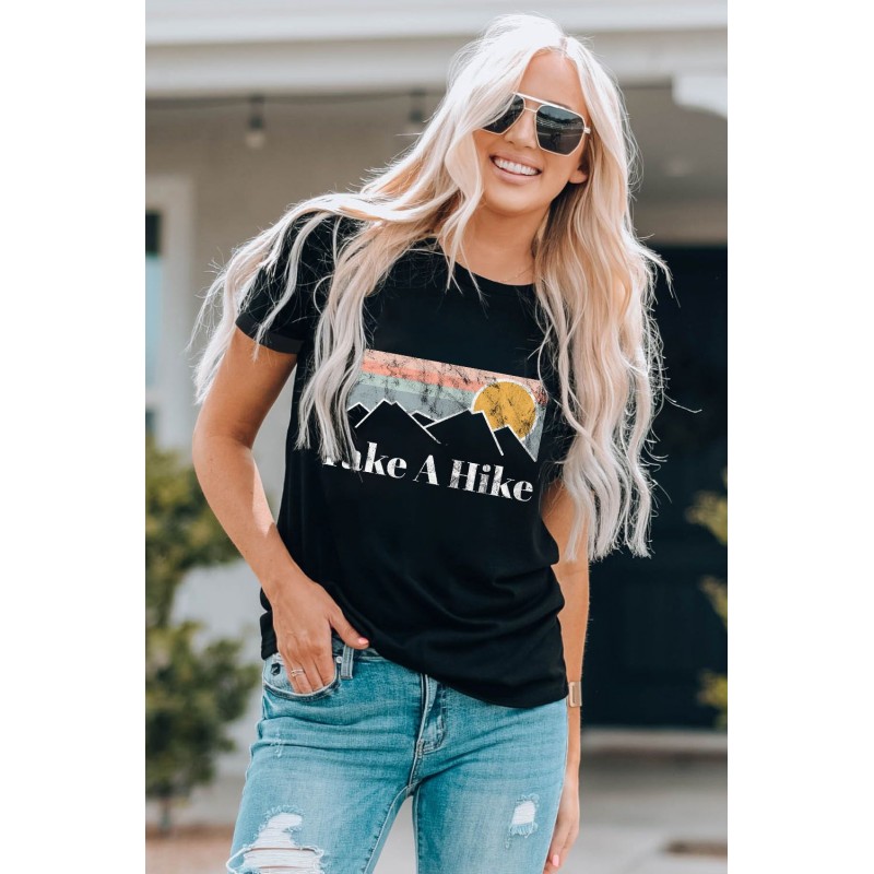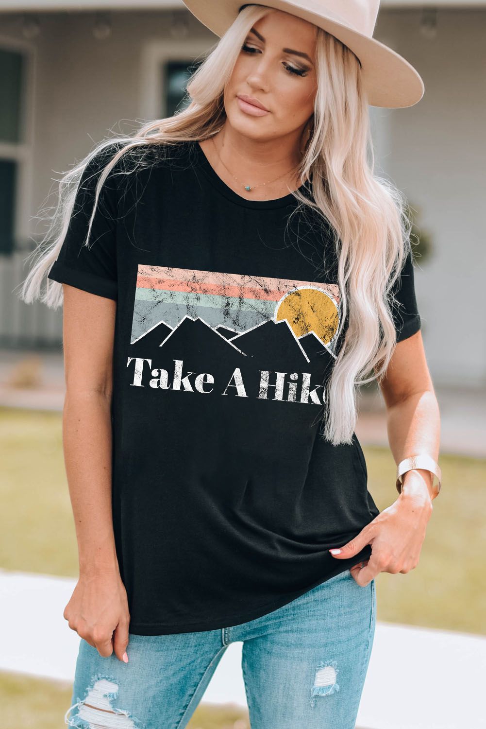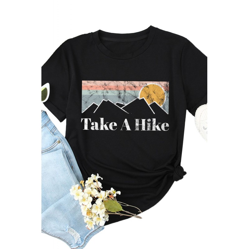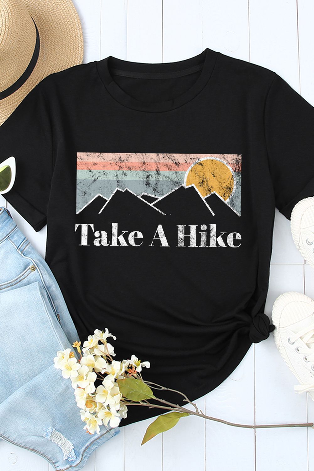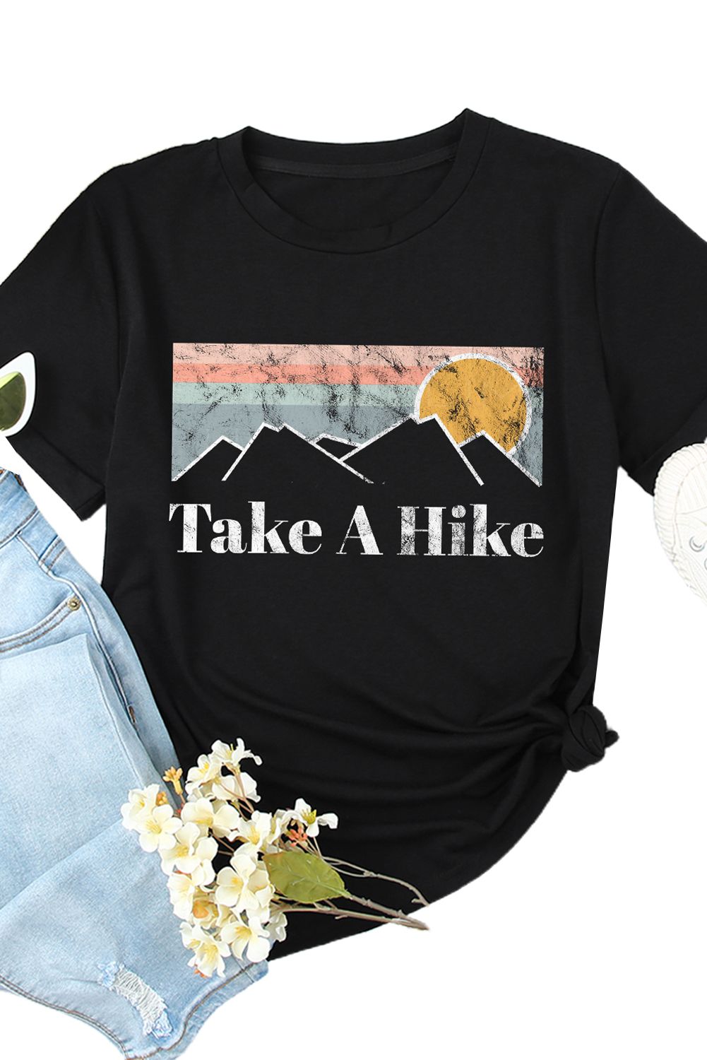 Black Take A Hike Graphic Printed Short Sleeve Top
